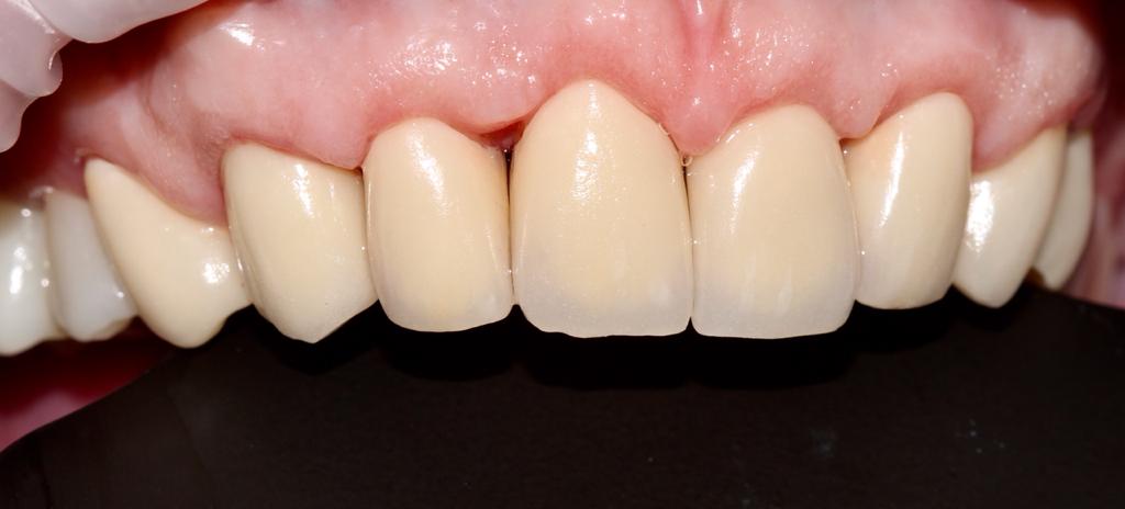 На зубы верхней челюсти изготовлены виниры EMAX методом прессования с донанесением керамической массы.