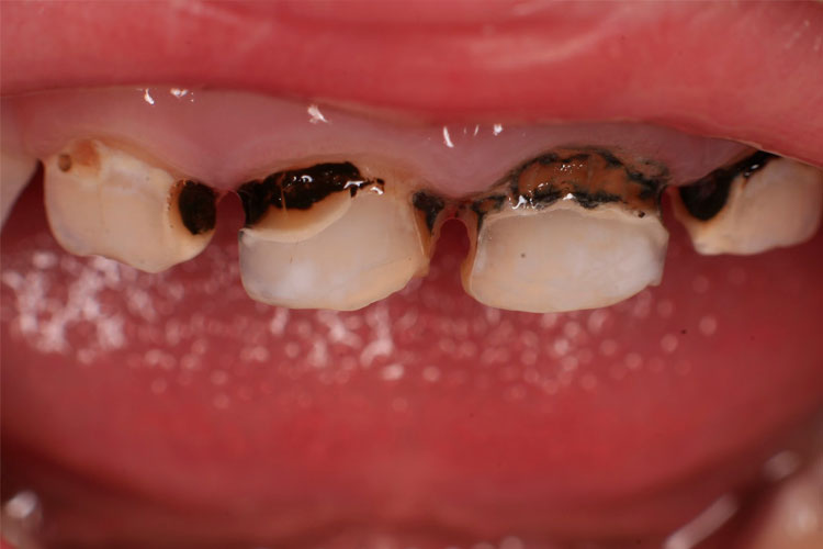 Если гигиена зубов плохая, то результатом становится развитие кариеса. Бактерии, содержащиеся в зубном налете активно размножаться, образуя кислоту. Она вымывает фтор и кальций из эмали зубов. Эмаль становится мягкой, позволяя бактериям проникнуть глубже в зуб и разрушать его. Это и есть первая стадия — кариозное пятно. На этом этапе его еще можно остановить и вылечить даже без бормашины